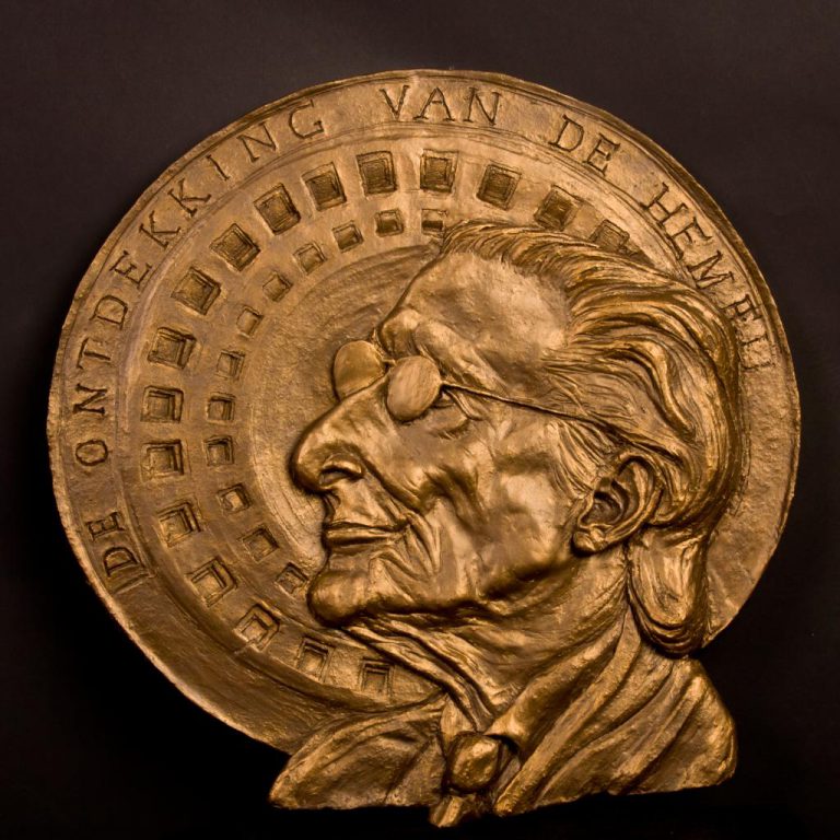 Dit reliëf is een kunstwerk dat de beroemde Nederlandse schrijver op een unieke wijze verbeeldt. Op de achtergrond is de cover van zijn meesterwerk “De ontdekking van de hemel” te zien, wat het beeld een extra gelaagdheid en symboliek geeft. Dit keramisch portret vormt een eerbetoon aan Harry Mulisch zijn literaire nalatenschap en zijn blijvende invloed op de Nederlandse literatuur.
